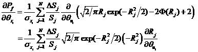 將式和式代入式中,可得失效概率對基本隨機變量分布參數(shù)