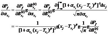 根據(jù)復(fù)合函數(shù)求導(dǎo)法則可得模糊失效概率對(duì)基本變量隸屬函數(shù)分布參數(shù)的可靠性試驗(yàn)靈敏度為